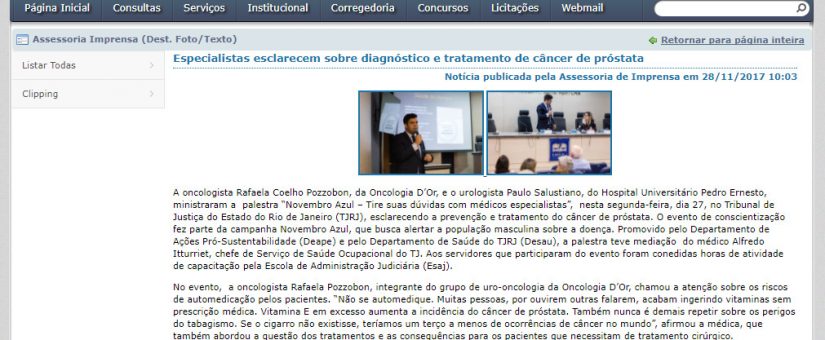 Site do Tribunal de Justiça- RJ – Palestra de prevenção do Câncer de Próstata On 1 de dezembro de 2017